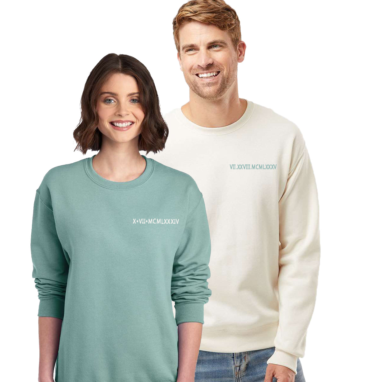 Embroidered Roman Numerals Date Couples Sweatshirt